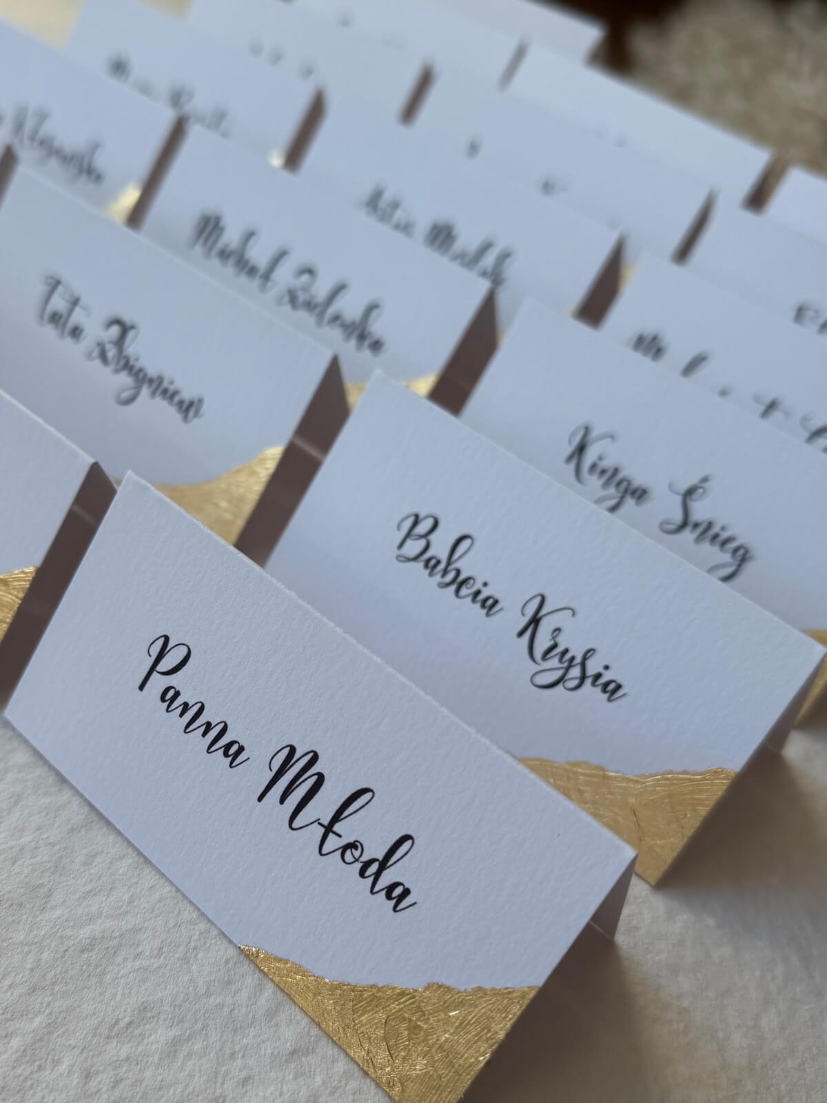 Minimalistyczna, a zarazem pełna elegancji winietka, która doda stołowi wyjątkowego blasku. Subtelne złocenie rogu lub krawędzi sprawia, że każda karta prezentuje się niezwykle stylowo doskonała propozycja dla miłośników prostoty z nutą luksusu.