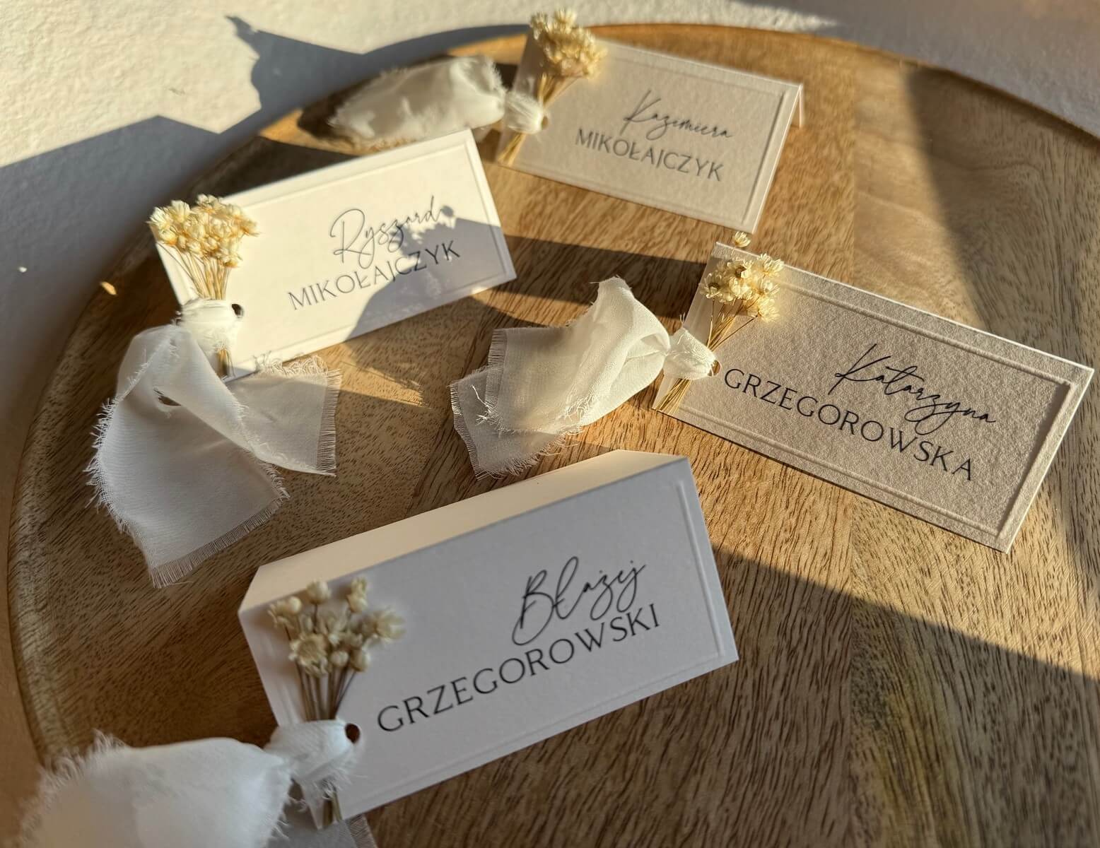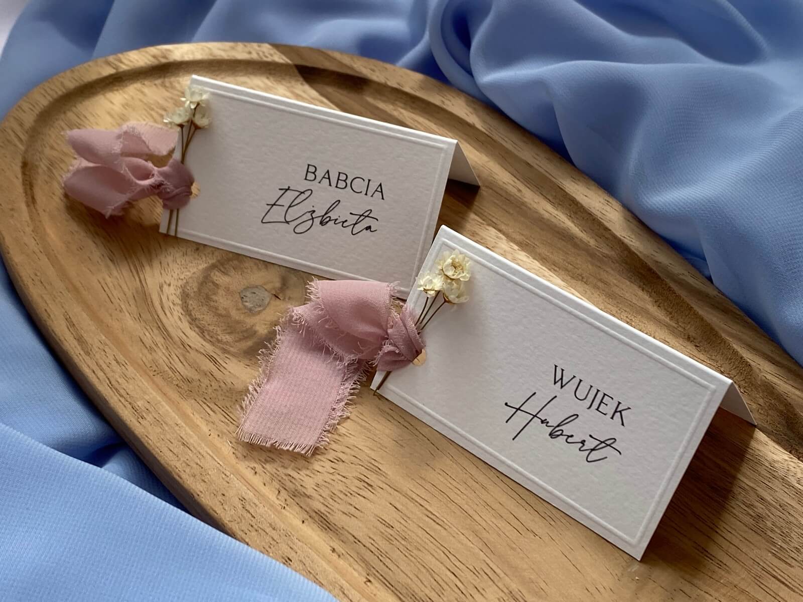 Subtelna, ręcznie wykonana winietka, która doda stołowi wyjątkowego charakteru. Winietka została wykonana z wysokiej jakości papieru o delikatnej fakturze, ozdobiona suszonym kwiatuszkiem oraz wstążką. Minimalistyczny nadruk w klasycznej czcionce dopełnia całości, tworząc harmonijną, ponadczasową kompozycję.