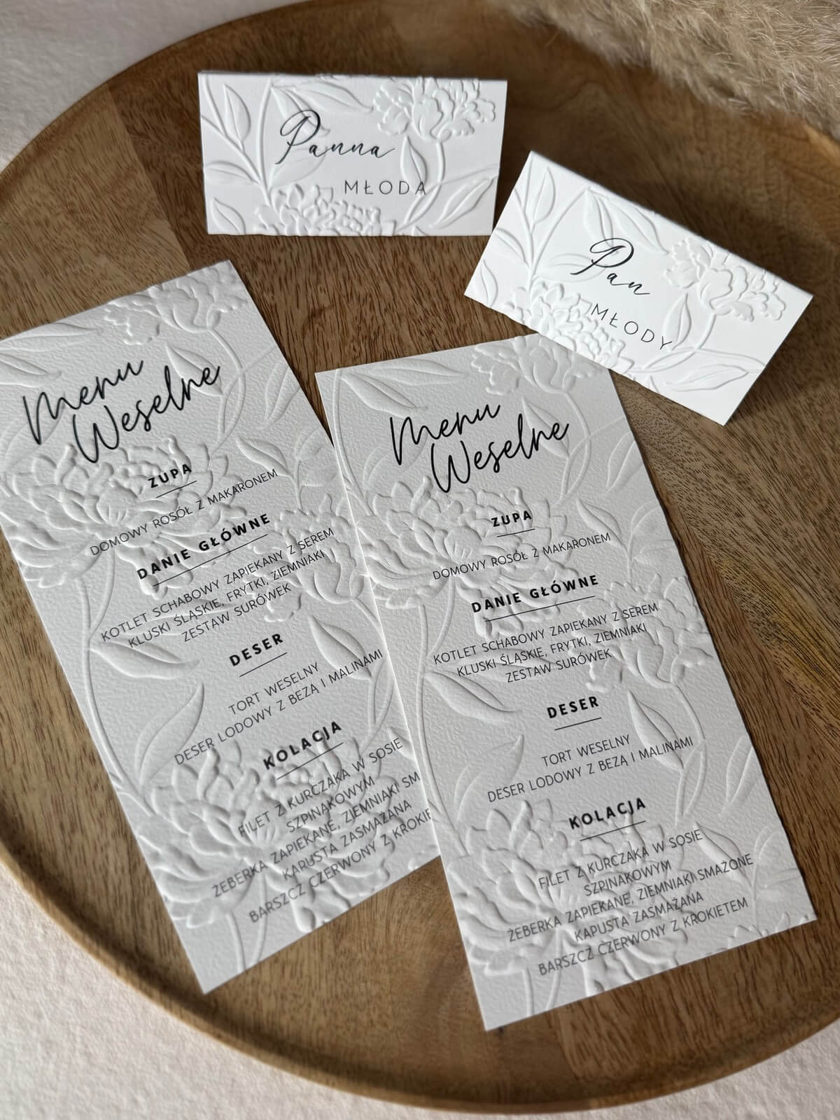 Winietka wykonana z wysokiej jakości papieru o subtelnej, tłoczonej fakturze przedstawiającej delikatny wzór piwonii. Minimalistyczna forma i eleganckie wykończenie nadają jej wyjątkowego uroku i klasy, idealnie komponując się z wystrojem w stylu nowoczesnym, romantycznym lub klasycznym.